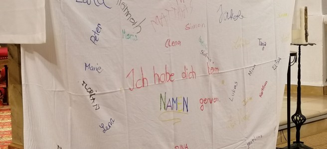 Liebe Jugendliche! Liebe versammelte Gemeinde! Hier vorne am Altar seht ihr ein großes, weißes Tuch. In der Mitte steht „Ich habe dich beim Namen gerufen“ (Jesaja 43,1) und rundherum sind alle unsere Vornamen. In manchen Situationen freuen wir uns, wenn mein Name genannt wird, in anderen weniger. Unangenehm ist es manchmal in der Schule, wenn … Du bist wertvoll und wichtig für die Gemeinschaft weiterlesen